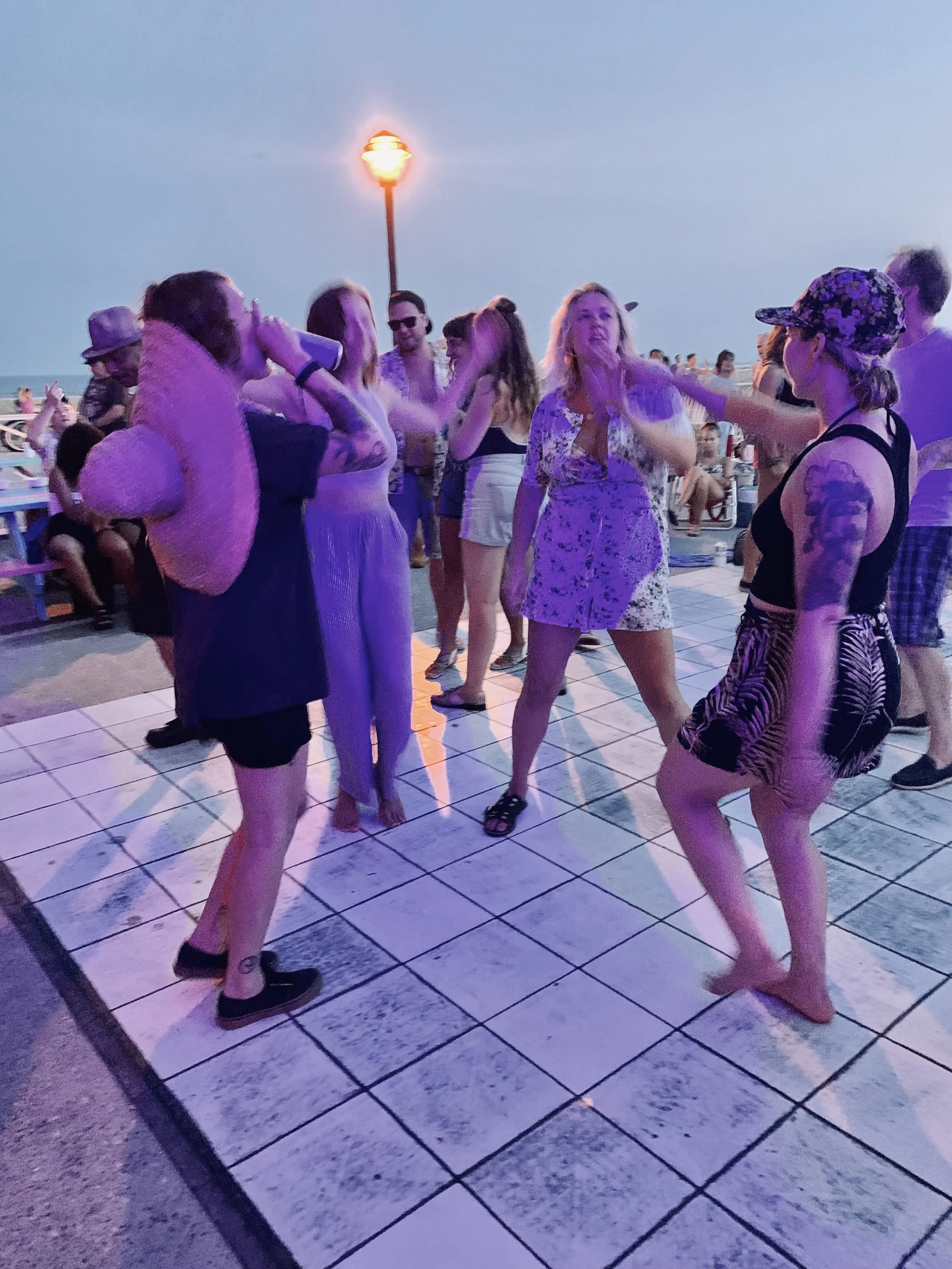 There was another chance in November 2019, dancing on opposite sides of the bar to an AC/DC cover band at a mutual friend’s fundraiser in Red Hook, but their paths didn’t cross then either. That same month, they had another chance to meet the day after Thanksgiving, dancing across the room at a Wild Yaks show in Greenpoint, but they still didn’t connect. There were countless other times where their circles intersected at karaoke nights or beach days, friends bumping into each other in crowded bars, but the timing was not quite right.